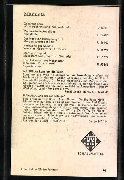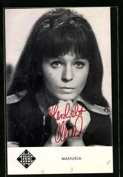 AK Musikerin Manuela mit ernstem Blick, Autograph