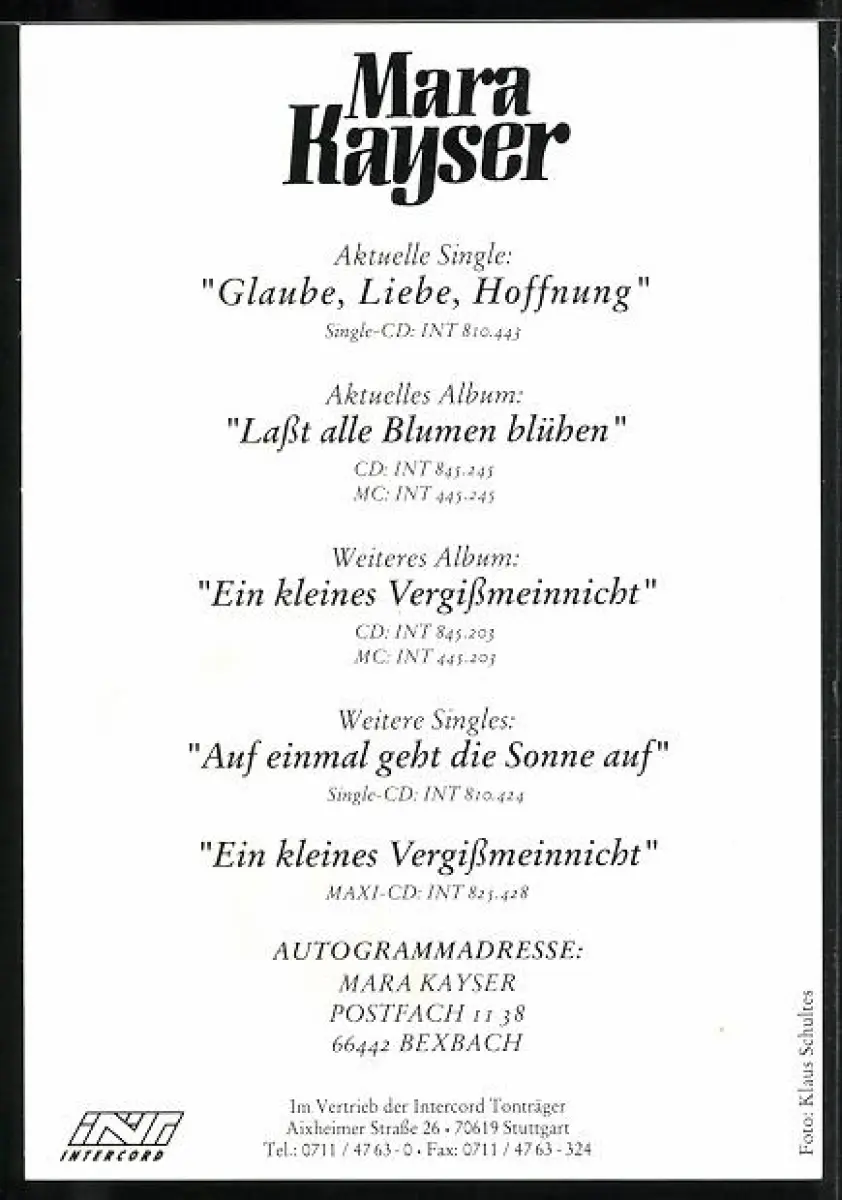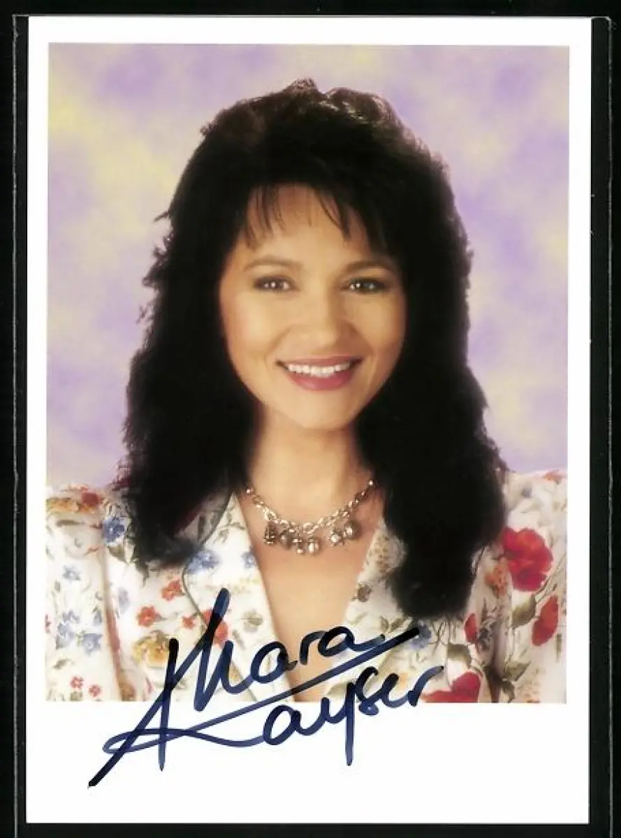 AK Musikerin Mara Kayser lächelnd im Porträt, Autograph