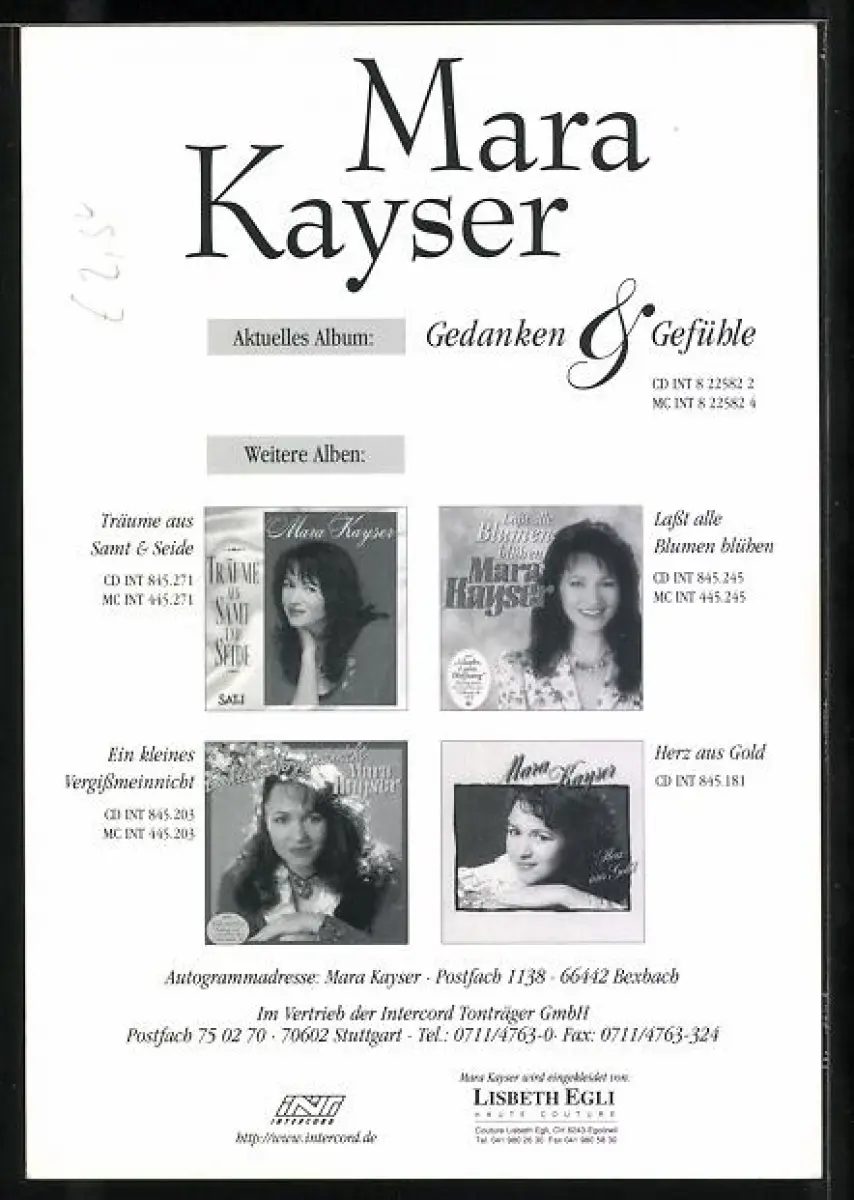 AK Musikerin Mara Kayser mit roten Rosen, Autograph