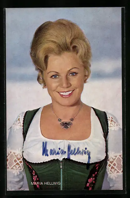 AK Musikerin Maria Hellwig in Heimattracht mit Autogramm