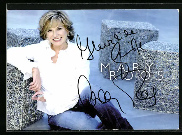 AK Musikerin Mary Roos in legerer Haltung, Autograph