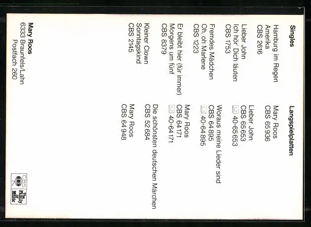 AK Musikerin Mary Roos schaut über ihre Schulter, Autograph