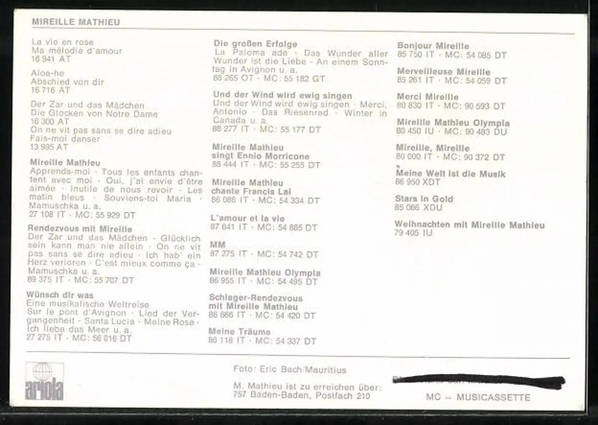 AK Musikerin Mireille Mathieu am singen, Autograph