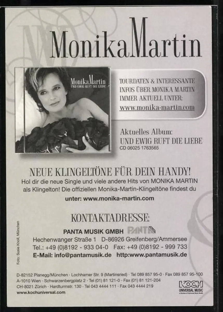 AK Musikerin Monika Martin mit einem Strauss Rosen, Autograph