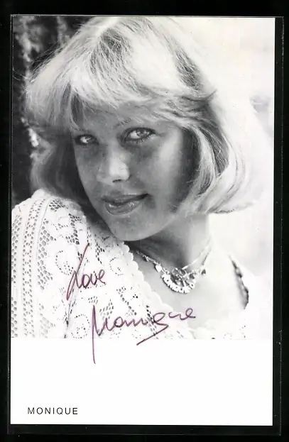 AK Musikerin Monique mit Halskette, Autograph
