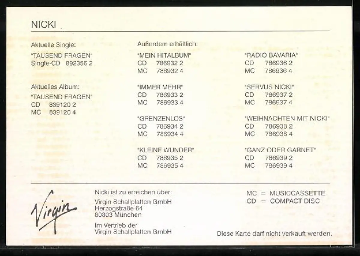 AK Musikerin Nicki in die Ferne blickend, Autograph