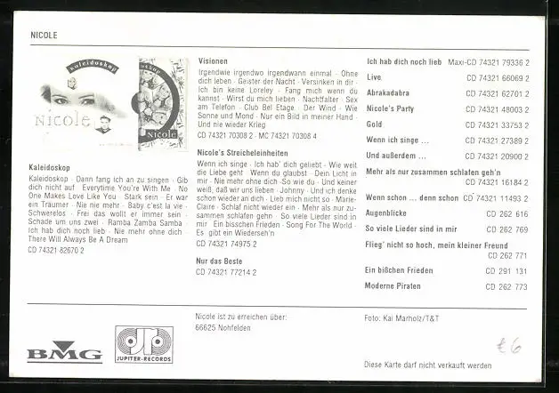 AK Musikerin Nicole mit intensivem Blick, original Autograph