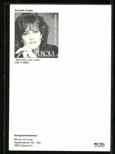 AK Musikerin Paola, Nahaufnahme mit Autograph
