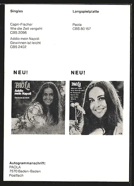 AK Musikerin Paola mit Blumen in der Hand, Autograph