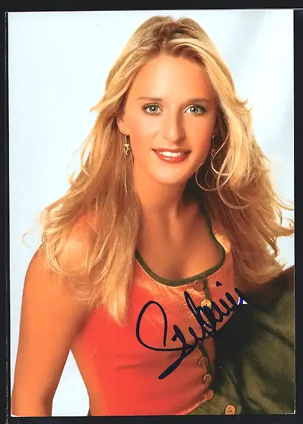 AK Musikerin Stefanie Hertel in schulterfreiem Shirt, mit original Autograph
