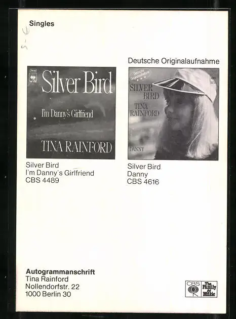 AK Musikerin Tina Rainford im Porträt, original Autograph