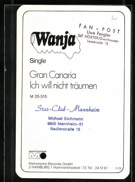 AK Musikerin Wanja mit schwarzem Haar, Autograph