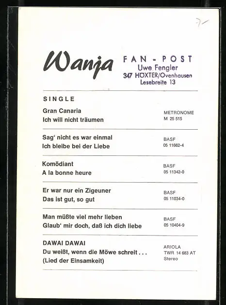 AK Musikerin Wanja mit schwarzem Haar, Autograph