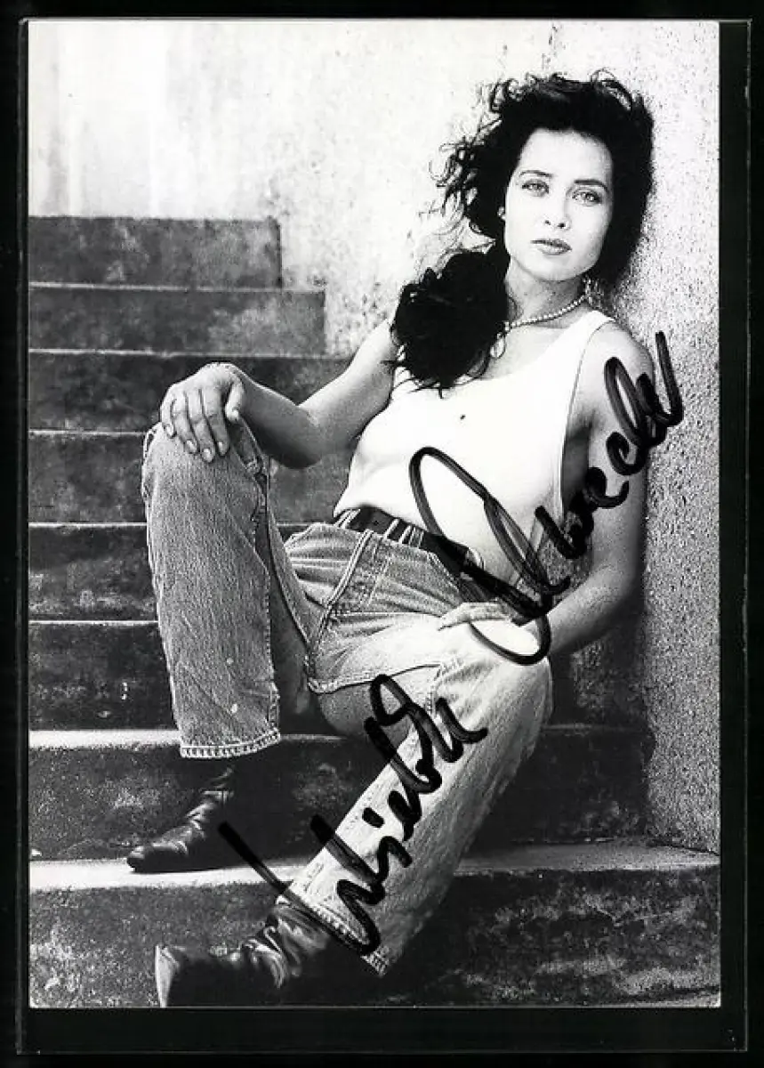 AK Musikerin Wiebke Schroeder auf einer Treppe sitzend, Autograph
