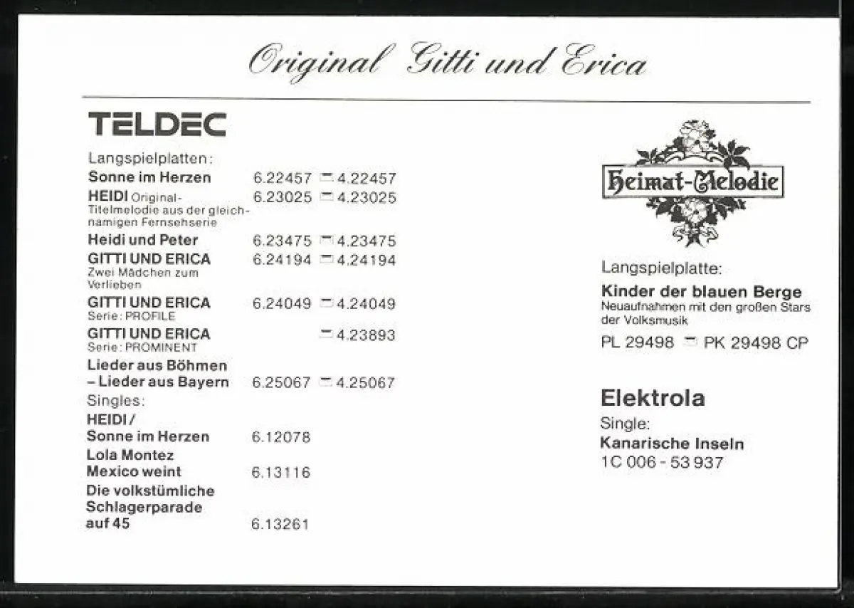 AK Musikerinenn Gitti und Erica im Porträt, Autograph