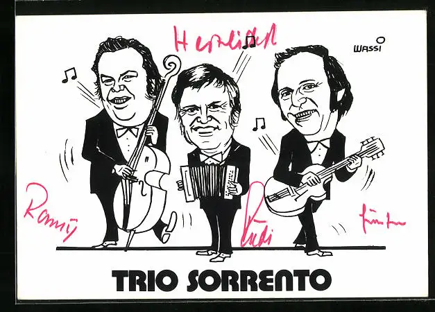 AK Musikgruppe Trio Sorrento mit ihren Instrumenten, Autograph