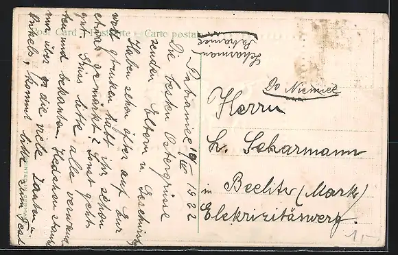 alte Ansichtskarte, gelaufen, Briefmarke entfernt, guter Zustand