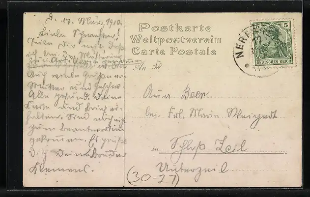 alte Ansichtskarte, gelaufen 1910, guter Zustand