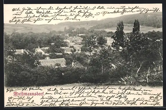 AK Muthmannsdorf, Teilansicht mit Bäumen