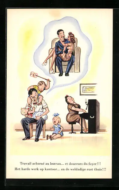 AK Mutter am Klavier und Vater mit Kindern, Erotik