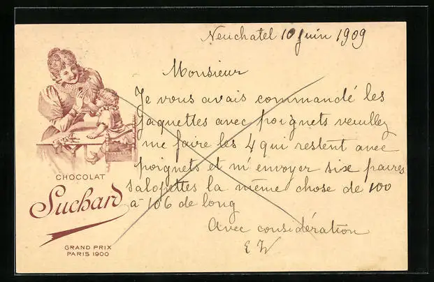 AK Mutter füttert iihr kleines Kind mit Schokolade, Chocolat Suchard