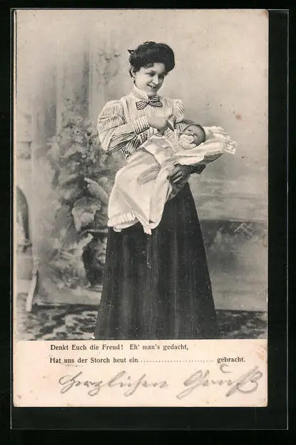 AK Mutter hält ihr Neugeborenes im Arm, Mutterglück
