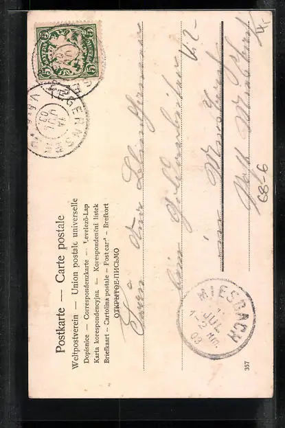 alte Ansichtskarte, gelaufen 1903, Stempelspur, guter Zustand