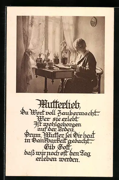 AK Mutter liest ein Buch, Gedicht Mutterlieb zum Muttertag