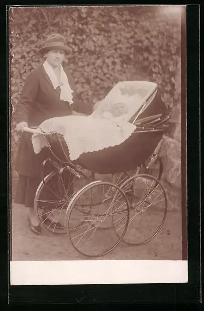 AK Mutter mit Baby im Kinderwagen
