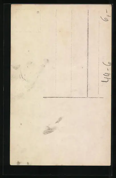 Personenbezogene Daten auf der Rückseite der Karte wurden durch blauen Textmarker unkenntlich gemacht. Die blauen Stellen sind auf die Vorderseite durchgeweicht und wirken sich negativ auf das Postkartenfoto aus