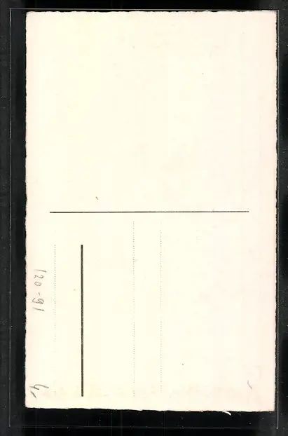 Personenbezogene Daten auf der Rückseite der Karte wurden durch blauen Textmarker unkenntlich gemacht. Die blauen Stellen sind auf die Vorderseite durchgeweicht und wirken sich negativ auf das Postkartenfoto aus