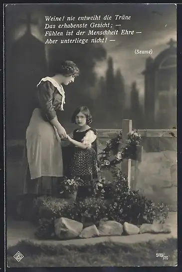 AK Mutter mit Kind an einem Grab