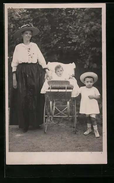 AK Mutter mit Tochter und Kleinkind im Kinderwagen