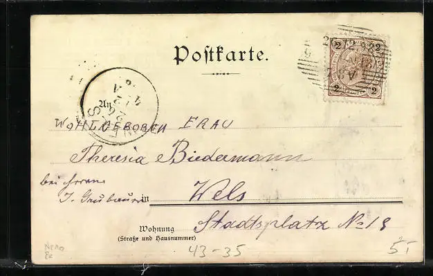 alte Ansichtskarte, gelaufen 1898, guter Zustand