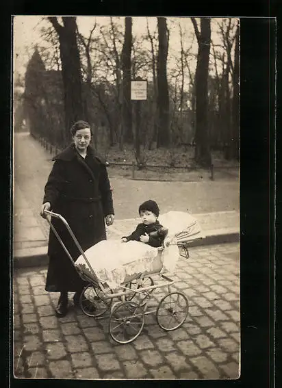 AK Mutter neben ihrem Kind im Kinderwagen