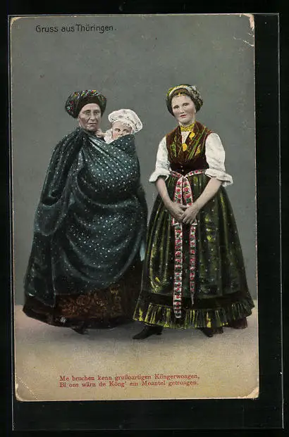 AK Mutter und Grossmutter mit Baby in thüringischen Trachten