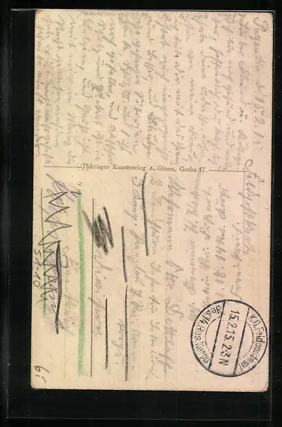 alte Ansichtskarte, gelaufen 1915 als Feldpost, Eckknick links unten, guter Zustand