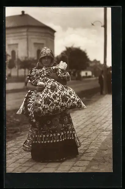 AK Mutter und Kind in Mezökövesder Festtracht