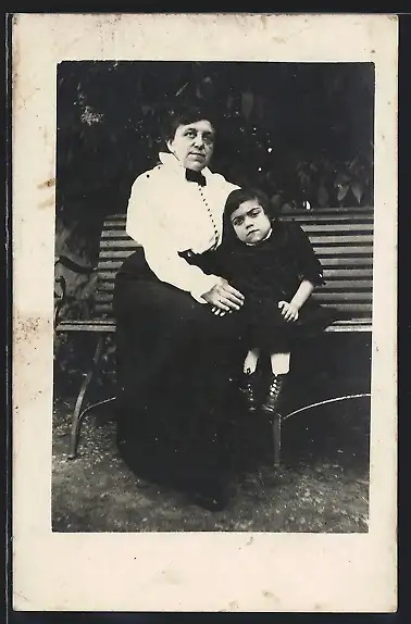 AK Mutter und Kind mit Behinderung auf einer Bank