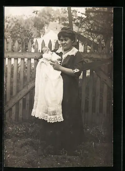 AK Mutterglück, Frau mit Neugeborenem im Garten