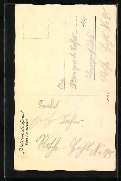 Personenbezogene Daten auf der Rückseite der Karte wurden durch blauen Textmarker unkenntlich gemacht. Die blauen Stellen sind auf die Vorderseite durchgeweicht und wirken sich negativ auf das Postkartenfoto aus