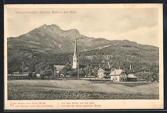 AK Mutters /Stubaital-Bahn, Ortsansicht mit Saile