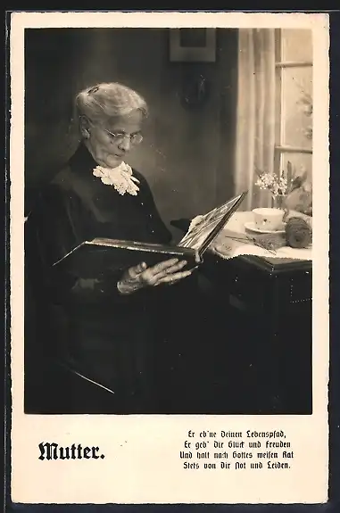 AK Muttertag, Mutter blättert in einem Fotoalbum