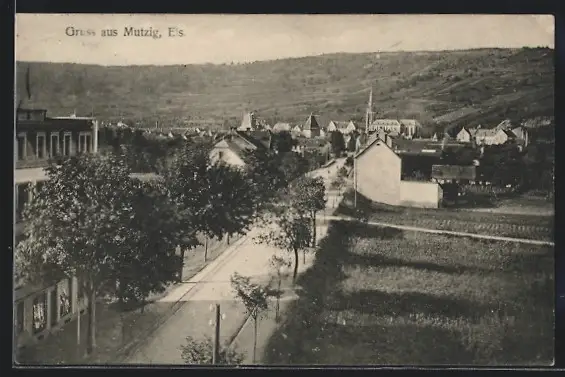 AK Mutzig i. E., Ortsansicht mit Magistrale aus der Vogelschau