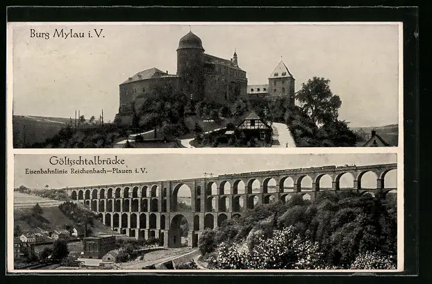 AK Mylau i. V., Burg, Göltzschtalbrücke