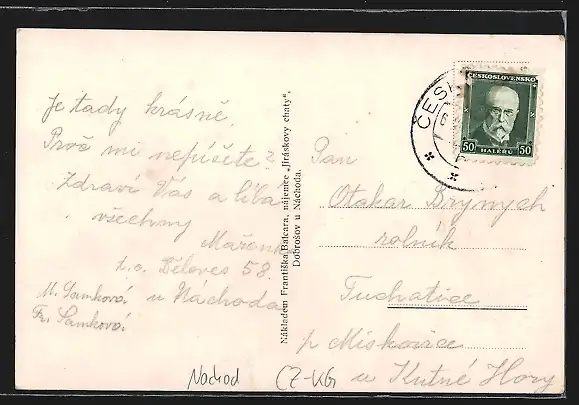 AK Nachod, Jiráskova turist. chata na Dobrosove u Náchoda