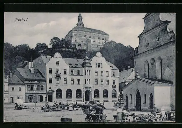 AK Náchod, Ortspartie mit Kirchenvorplatz