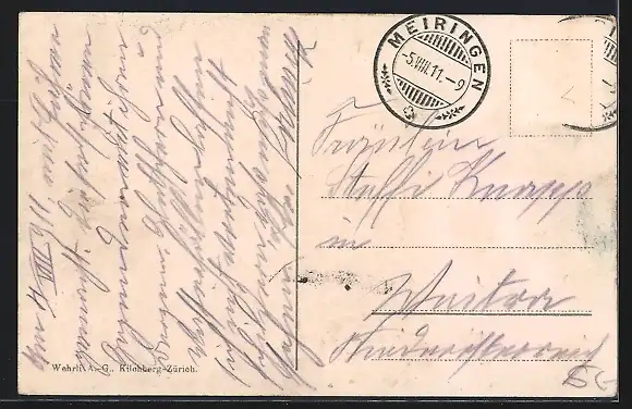 gelaufen 1911, Briefmarke entfernt, Bugspur li. oben, guter Zustand