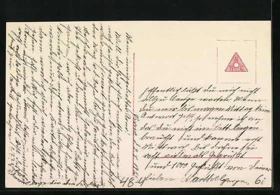 Personenbezogene Daten auf der Rückseite der Karte wurden durch blauen Textmarker unkenntlich gemacht. Die blauen Stellen sind auf die Vorderseite durchgeweicht und wirken sich negativ auf das Postkartenfoto aus