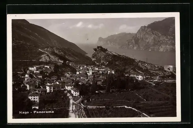 AK Nago, Ortsansicht mit Strasse und Bergpanorama